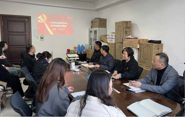 2025年12月29日下午,副校长姜小舜为国资处党支部讲授题为《以法制思想为引领筑牢学校国资治理根基》的专题党课,党课由支部书记朱金龙主持。